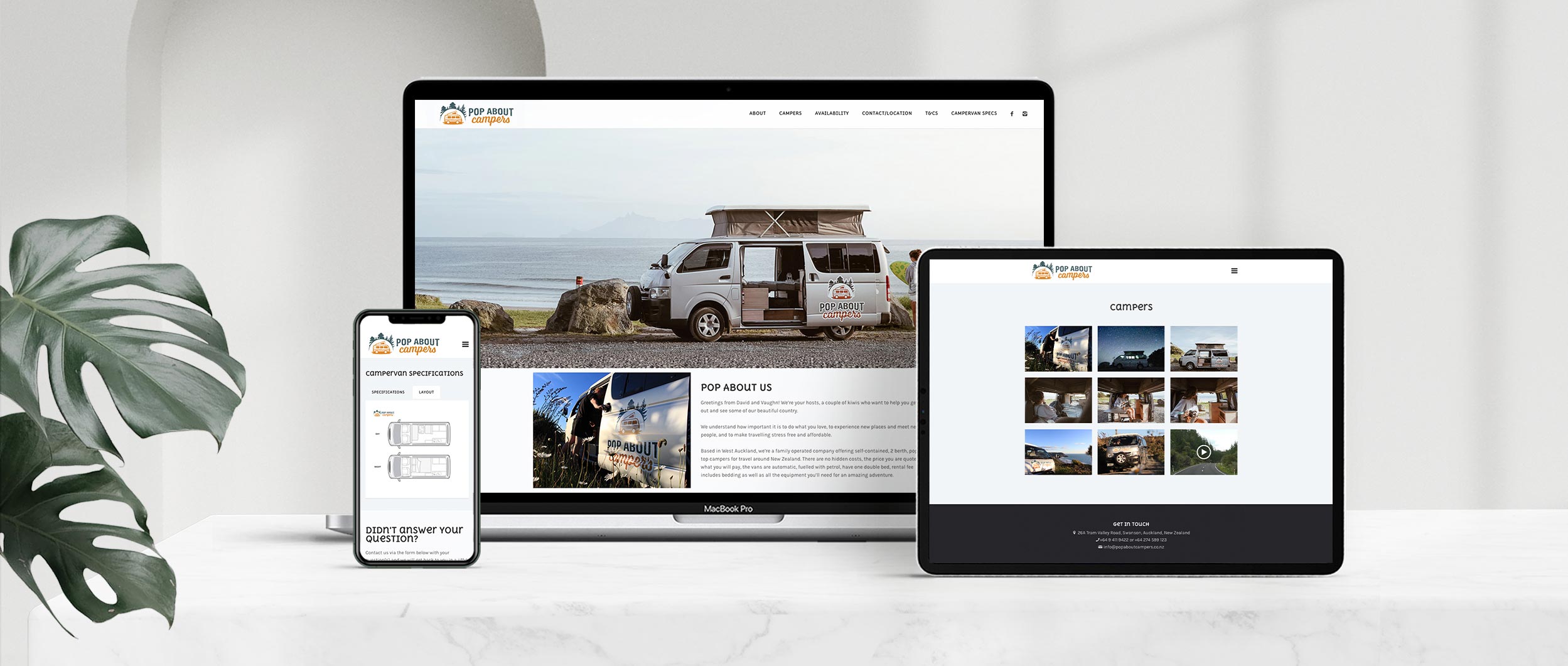 Pop About Campers is an Auckland based camper van hire company, specialising in pop top camper vans. Being an independently owned company who hasn’t been in the market for long, they wanted a quick, low cost, but effective way to reach their audience, so I helped out by creating their brand and responsive website. The branding has a fun and down to earth feel, potential customers are able to identify the company as ‘pop top’ camper van hire right away. The website is responsive across all devices, and holds all important information for people looking to hire their vans. Additionally, I was also asked to design print materials, such as van specifications and drop off/pick up forms.